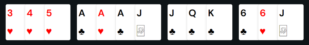 In the above scenario, K♦️ is a wild card joker used to replace A♥️ or A♦️.